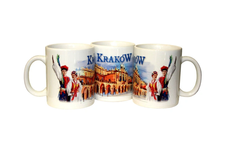 - Kubek ze malowaną Parą krakowską i Sukiennicami.