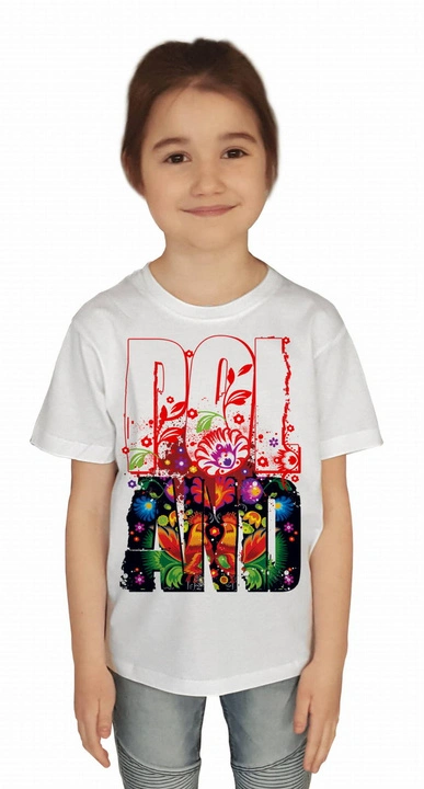 - Koszulka JUNIOR bawełniana z nadrukiem "POLAND FOLK".