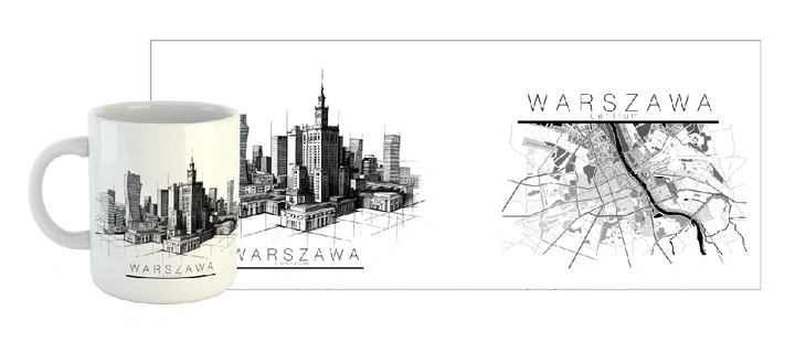 - Kubek z grafiką "Warszawa Szkic Mapa".